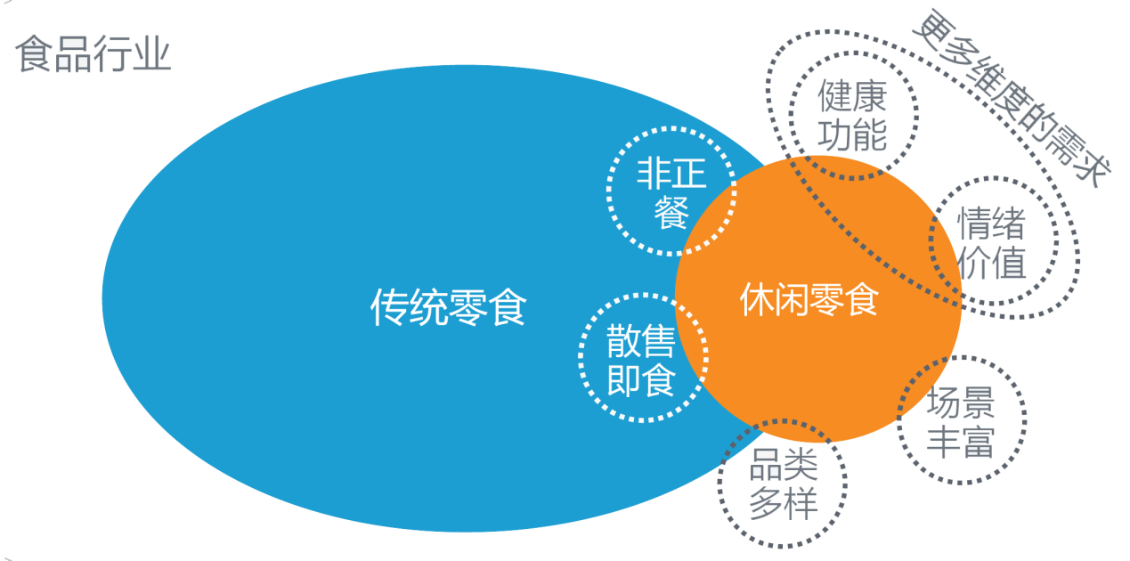 目前行業(yè)專家和資深從業(yè)者,往往認(rèn)為“休閑零食”和“休閑食品”,甚至是“零食”這樣的產(chǎn)品概念雖然互有區(qū)別,但某種意義上又是互相交融的,畢竟不同的概念也處在不停的變動中,舊的概念在升級,新的概念在擴(kuò)展: