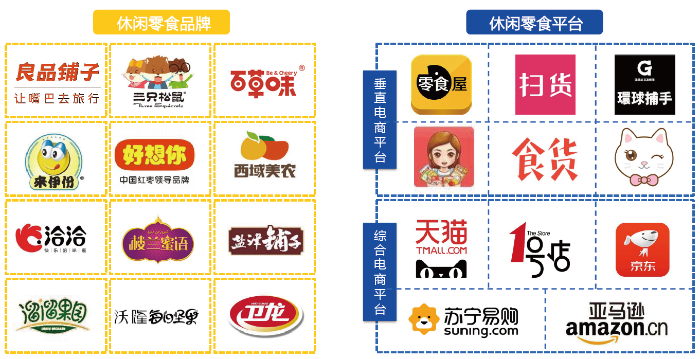 休閑零食企業(yè)主要分為兩類,品牌企業(yè)以及平臺企業(yè),平臺企業(yè)又分為綜合型電商平臺和零食類目垂直平臺。