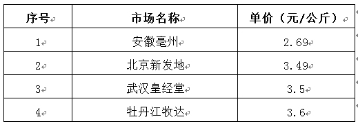 表2  全國(guó)部分重點(diǎn)市場(chǎng)生姜價(jià)格比較