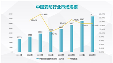 安防行業(yè)隨著現(xiàn)代社會(huì)安全需求應(yīng)運(yùn)而生的產(chǎn)業(yè)。根據(jù)中安網(wǎng)數(shù)據(jù),2015年我國(guó)安防行業(yè)總產(chǎn)值達(dá)到4860億元,安防產(chǎn)業(yè)在國(guó)內(nèi)生產(chǎn)總值占7‰,行業(yè)增速保持在13%,國(guó)內(nèi)安防市場(chǎng)的增速高于全球。