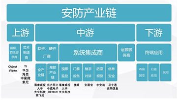 我國(guó)真正意義上的安防產(chǎn)業(yè)興起于20世紀(jì)80年代,歷經(jīng)30逾年的積淀,已形成較為完整的產(chǎn)業(yè)鏈。即“上游零部件供應(yīng)商—中游軟硬件供應(yīng)商、系統(tǒng)集成商、運(yùn)營(yíng)服務(wù)商和經(jīng)銷商—下游的終端用戶。