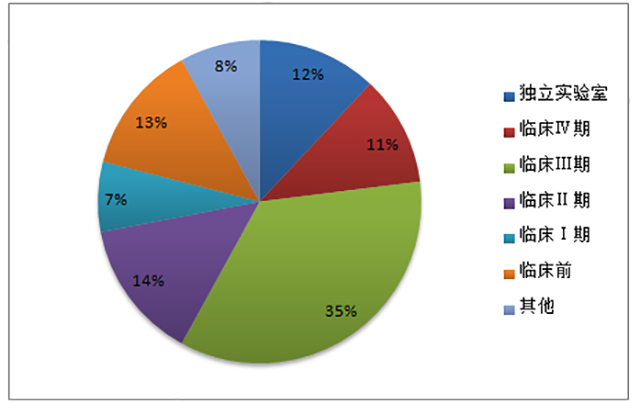 據(jù)美國(guó)臨床試驗(yàn)數(shù)據(jù)庫(kù)等數(shù)據(jù)來(lái)源顯示,2014年全球 CRO 市場(chǎng)收入約 70%來(lái)自臨床市場(chǎng)。其中,臨床Ⅱ和臨床Ⅲ期占了全部收入的 50%左右。我國(guó)CRO市場(chǎng)臨床研究占到近60%。其中,臨床I至III期市場(chǎng)合計(jì)約 37%,占比相對(duì)較低,且服務(wù)水平尚有一定提升空間。近年來(lái),隨著國(guó)內(nèi)大中型 CRO 企業(yè)在臨床試驗(yàn)領(lǐng)域與跨國(guó)藥企開展合作,積累了越來(lái)越多的優(yōu)質(zhì)客戶和臨床試驗(yàn)研究經(jīng)驗(yàn),服務(wù)水平也正在快速提高,并逐步向國(guó)際先進(jìn)水平靠攏。