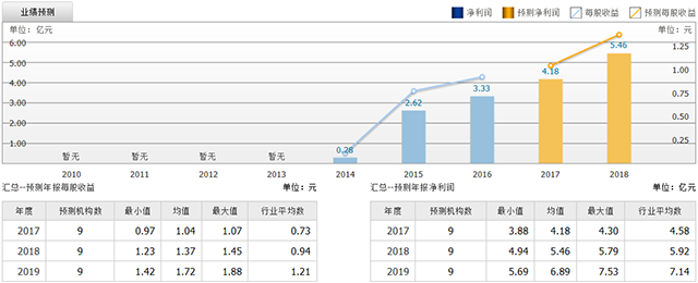 截至2017年7月17日,6個(gè)月以內(nèi)共有 17 家機(jī)構(gòu)對(duì)泰格醫(yī)藥的2017年度業(yè)績(jī)作出預(yù)測(cè);預(yù)測(cè)2017年每股收益 0.54 元,較去年同比增長(zhǎng) 80%,預(yù)測(cè)2017年凈利潤(rùn) 2.68 億元,較去年同比增長(zhǎng) 90.4% 。