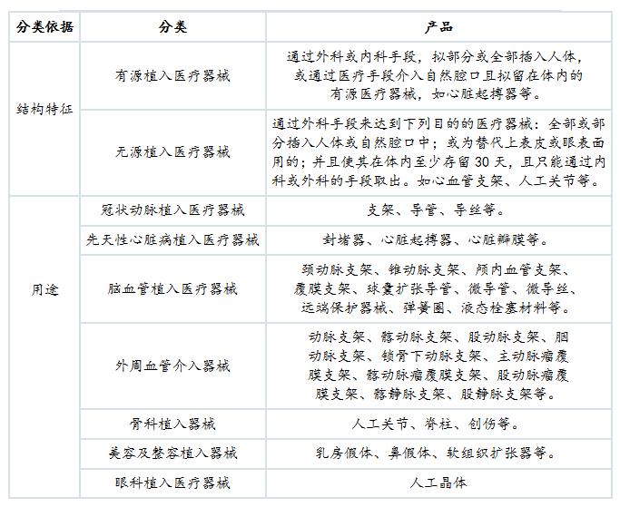 表2:植入醫(yī)療器械產品分類