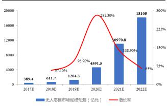 中國(guó)無(wú)人零售市場(chǎng)交易規(guī)模預(yù)測(cè)(億元)