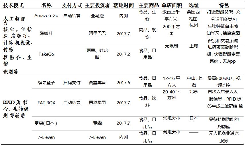 ? 無(wú)人店類似于小超市或者便利店,主要是2016年12月之后開(kāi)始迅速爆發(fā),雖然之前也有企業(yè)開(kāi)始耕耘無(wú)人零售,但市場(chǎng)的火熱以國(guó)外的Amazon Go 和國(guó)內(nèi)的淘咖啡為起點(diǎn)和引爆點(diǎn),巨頭的行動(dòng)帶動(dòng)了整體市場(chǎng)的快速推進(jìn)。
