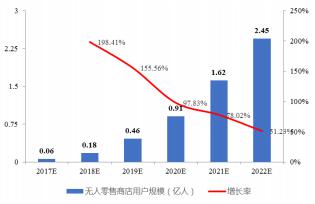 中國(guó)無(wú)人零售用戶規(guī)模預(yù)測(cè)(億人)