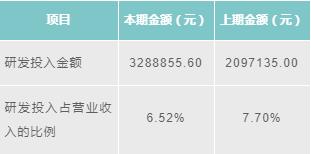 2016年,維拓環(huán)境研發(fā)投入金額為3288855.60元,相較2015年有所增長。維拓環(huán)境研發(fā)投入占營業(yè)收入的比例,由2015年的7.70%下降為2016年的6.52%。