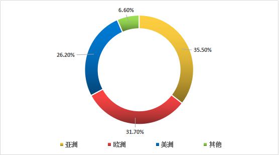 調(diào)查顯示,2016年前三季度全球α-亞麻酸行業(yè)需求市場占比如下:其中亞洲占比最高達到35.5%,其次是歐洲31.7%,美洲26.2%。