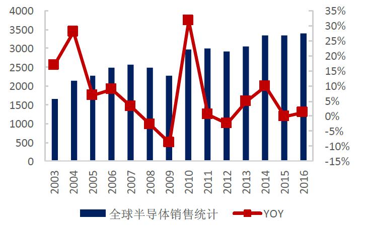 隨著全球經(jīng)濟(jì)的逐步復(fù)蘇,PC、手機、液晶電視等消費類電子產(chǎn)品需求不斷增加,同時在以物聯(lián)網(wǎng)、可穿戴設(shè)備、云計算、大數(shù)據(jù)、新能源、醫(yī)療電子和安防電子等為主的新興應(yīng)用領(lǐng)域強勁需求的帶動下,半導(dǎo)體銷售市場規(guī)模穩(wěn)定增長,預(yù)計2017年全球集成電路市場規(guī)模增長至3465億美元。