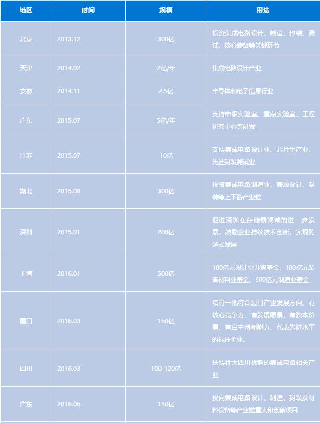 目前,北京、上海、深圳、南京、合肥、廈門、無錫、石家莊、昆山,以及福建、湖北、安徽、陜西、廣東、四川、遼寧等地,均成立了上百億規(guī)模的集成電路產(chǎn)業(yè)投資基金,大基金總規(guī)模達(dá)到1387.2億元,企業(yè)和地方產(chǎn)業(yè)基金規(guī)模累計超5000億元。