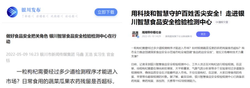 銀川日?qǐng)?bào)、銀川電視臺(tái)宣傳報(bào)道銀川智慧食品安全檢驗(yàn)檢測(cè)中心助力銀川市“兩個(gè)創(chuàng)建”
