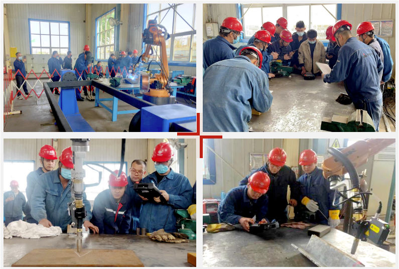 針對(duì)焊接機(jī)器人的具體操作,信息科技公司派遣專(zhuān)業(yè)技術(shù)人員前往現(xiàn)場(chǎng)開(kāi)展了詳細(xì)的講解和演示。技術(shù)人員對(duì)GR-C操作系統(tǒng)、各類(lèi)參數(shù)基本設(shè)置、程序編輯示例、程序管理與指令編輯、輸入輸出及PLC功能、程序加載及功能檢測(cè)、焊接編程應(yīng)用及安全操作等事項(xiàng)進(jìn)行了一一說(shuō)明,切實(shí)提高了操作人員對(duì)不同應(yīng)用場(chǎng)景下各種編程及操作的掌握程度,同時(shí)有力保障了操作人員對(duì)整體智能焊接系統(tǒng)的操作安全,為后期焊接機(jī)器人在實(shí)際工作中的靈活應(yīng)用打下堅(jiān)實(shí)基礎(chǔ)。